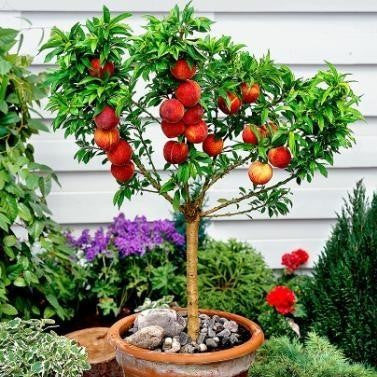 - Melocotonero y Nectarina (Prunus persica): Se pueden encontrar variedades enanas que producen frutos deliciosos. Requieren una poda cuidadosa para mantener su forma y tamaño.